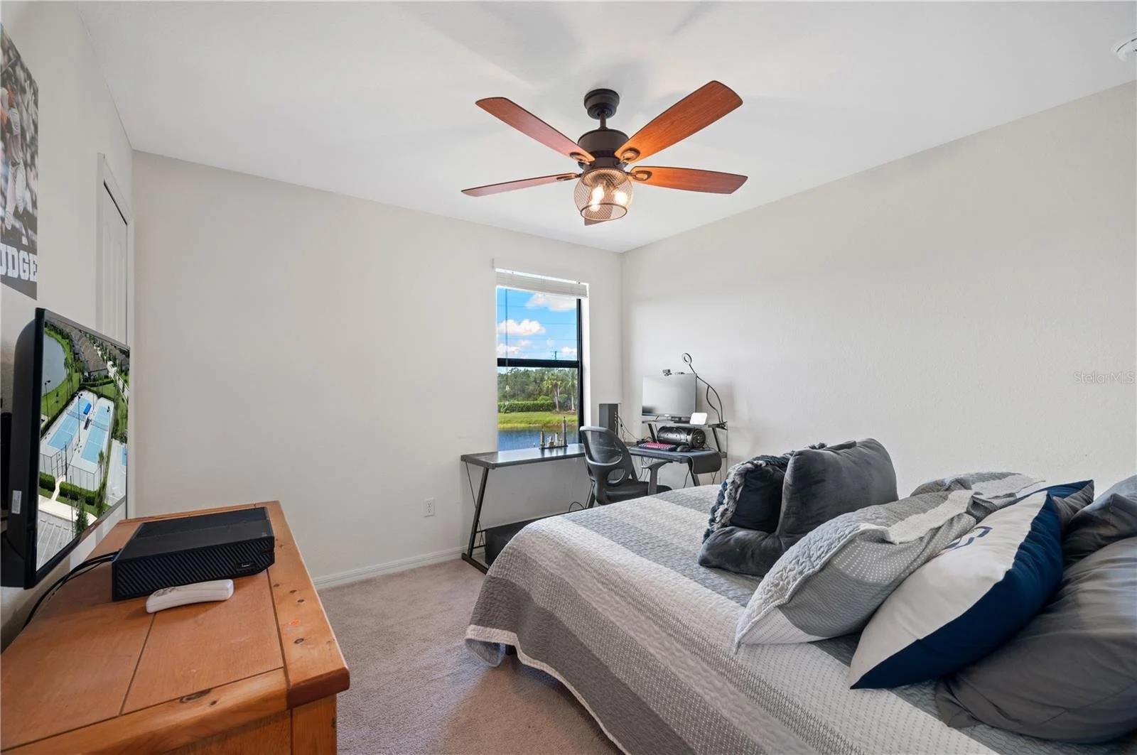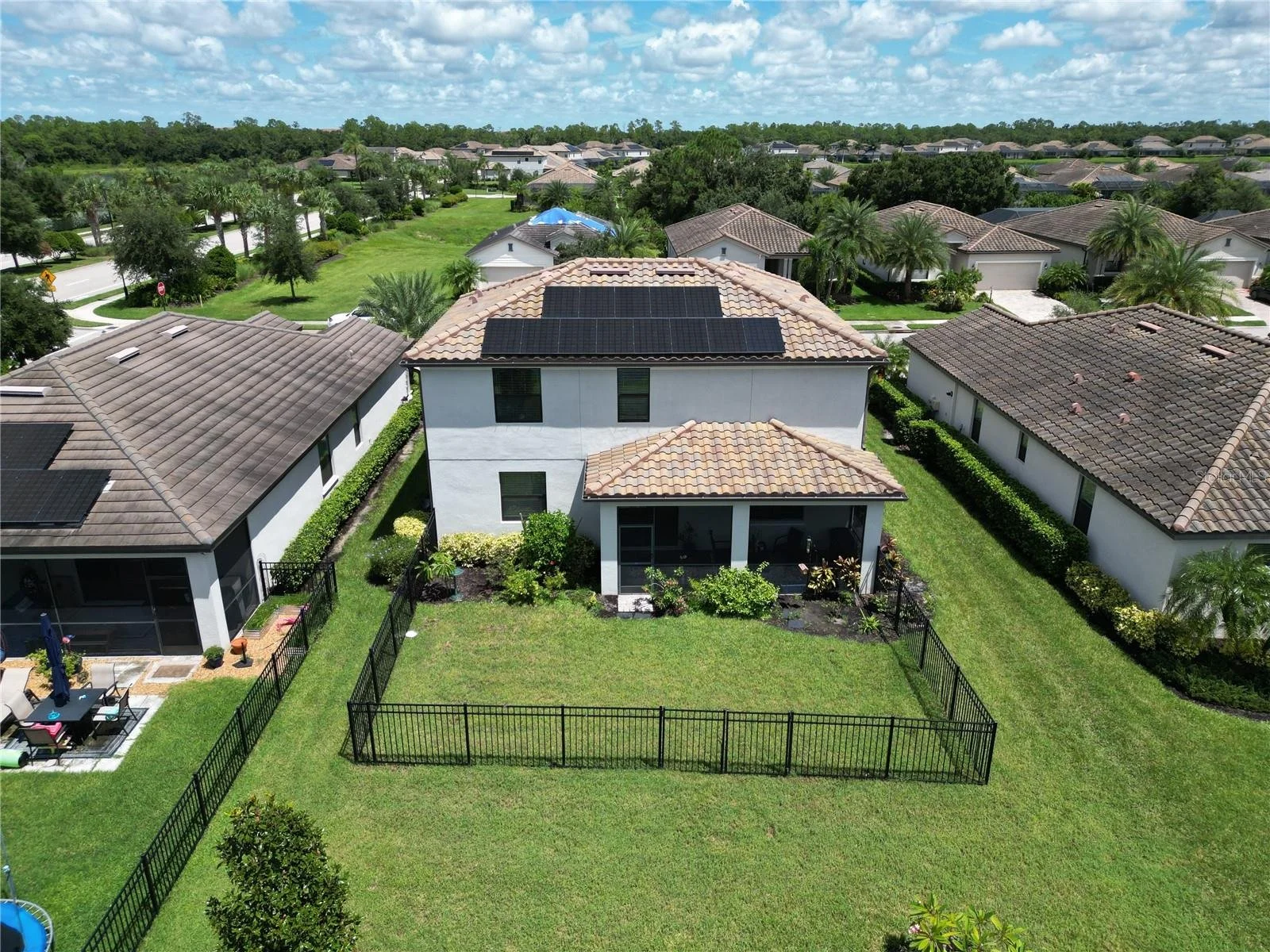 MOTIVATED SELLER!!! Welcome home to Polo Run the only all solar powered village at Lakewood Ranch! (The #1 master planned community in the United States.) Polo Run is a gated and maintenance free community. This stunning home located on a highly desirable waterfront lot is loaded with features and upgrades including a gorgeous paver driveway and lanai, as well as a tiled roof. Featuring an open concept design, it is perfect for the homeowner who loves to cook or entertain. The luxurious kitchen features all stainless-steel appliances, gorgeous granite countertops and large island for additional kitchen seating. The open floor plan of the living/breakfast nook/kitchen area opens up to a screened-in lanai with a scenic overlook of a pond and with no rear neighbors. The primary suite, overlooking the pond, features a massive walk-in closet. The primary bathroom has a fully tiled, walk-in shower, with glass entry, double bowl vanity, and an additional linen closet. The second and third bedrooms are also on the second floor, and feature more than ample closets. A second bathroom near these two bedrooms features a shower/tub combo. Additionally, the second floor has another living space/bonus room perfect for relaxing and hanging out with friends and family. The fourth bedroom and third bathroom located on the first floor are ideal for guests. The first floor also features flex space near the front of the home that could serve as a home office or formal dining rooom. The home also features a laundry room with appliances that will convey with the home. The two car garage offers plenty of room for two vehicles and additional storage. The exterior of the home also features lush tropical landscaping that add to the ambience of paradise in your own yard. The home also features a large fenced in area in the back yard with a wrought iron fence. Polo Run at Lakewood Ranch community amenities boast a clubhouse, pickleball and tennis courts, basketball court, an exercise facility, and aerobics room, resort style pool, dog park, playground/tot lot and walking paths to keep you active all year-round. Highly desired Polo Run at Lakewood Ranch is amenity rich with surprisingly low HOA fees. It is zoned for A+ rated schools, and near Lakewood Ranch Main Street, shopping at UTC, medical facilities, Sarasota Polo Club, top rated golf courses, international airports, MLB spring training sites, beautiful area beaches, county and state parks.